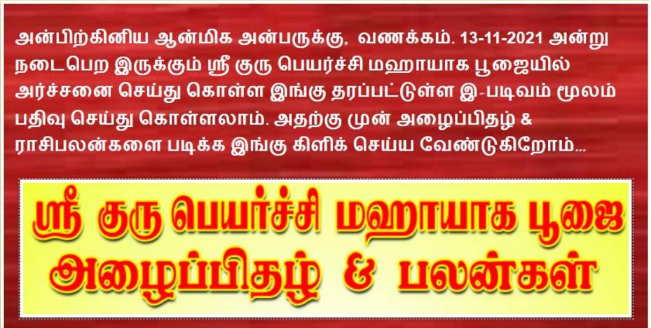 பூஜை நாள் : 13-11-2021, சனிக்கிழமை