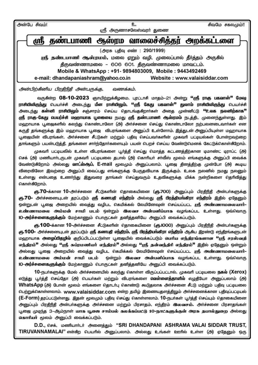 அழைப்பிதழ் மற்றும் ராசி பலன்களை