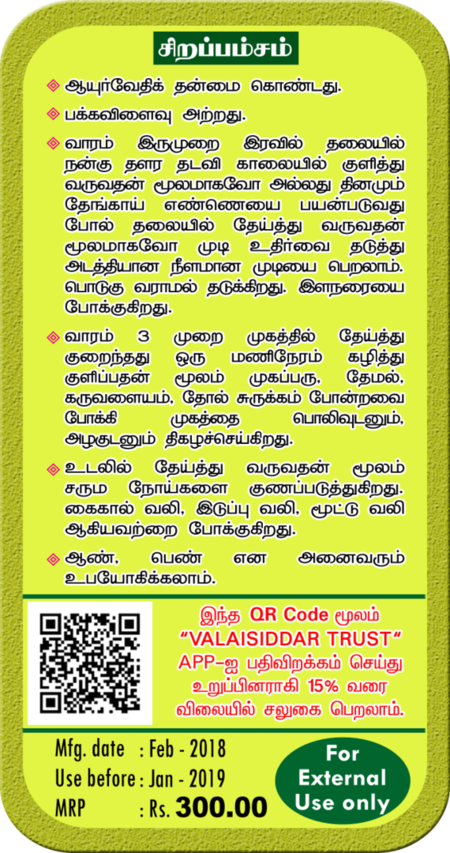 200 ML வாலாம்பிகை மூலிகை எண்ணெயை
